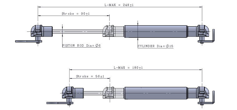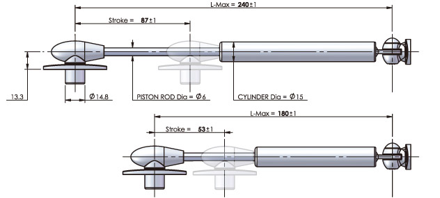 L-Max Color Piston Rod Cylinder Force 180mm 회색 산질화열처리 회색액체도장 · GAS SPRING (kgf/cm2) = 5, 6, 7, 8, 10, 12, 15