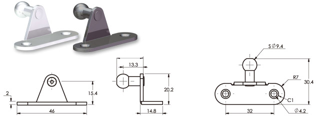 가구용 GAS SPRING의 브라켓에 대한 설명