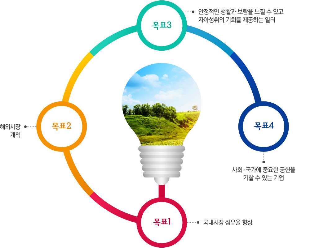 - 인간존중과 인재양성을 도모하는 기업체로서 보람 있고 윤택한 생활을 영위할 수 있는 이상적인 기업체